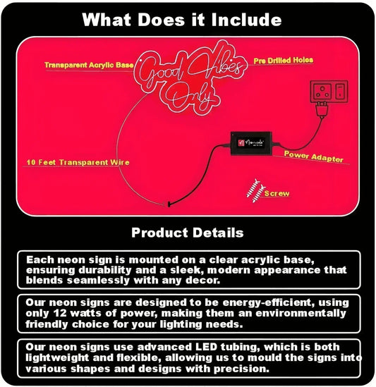NEONWALE Handcrafted Good Vibes Only Neon Sign, Red